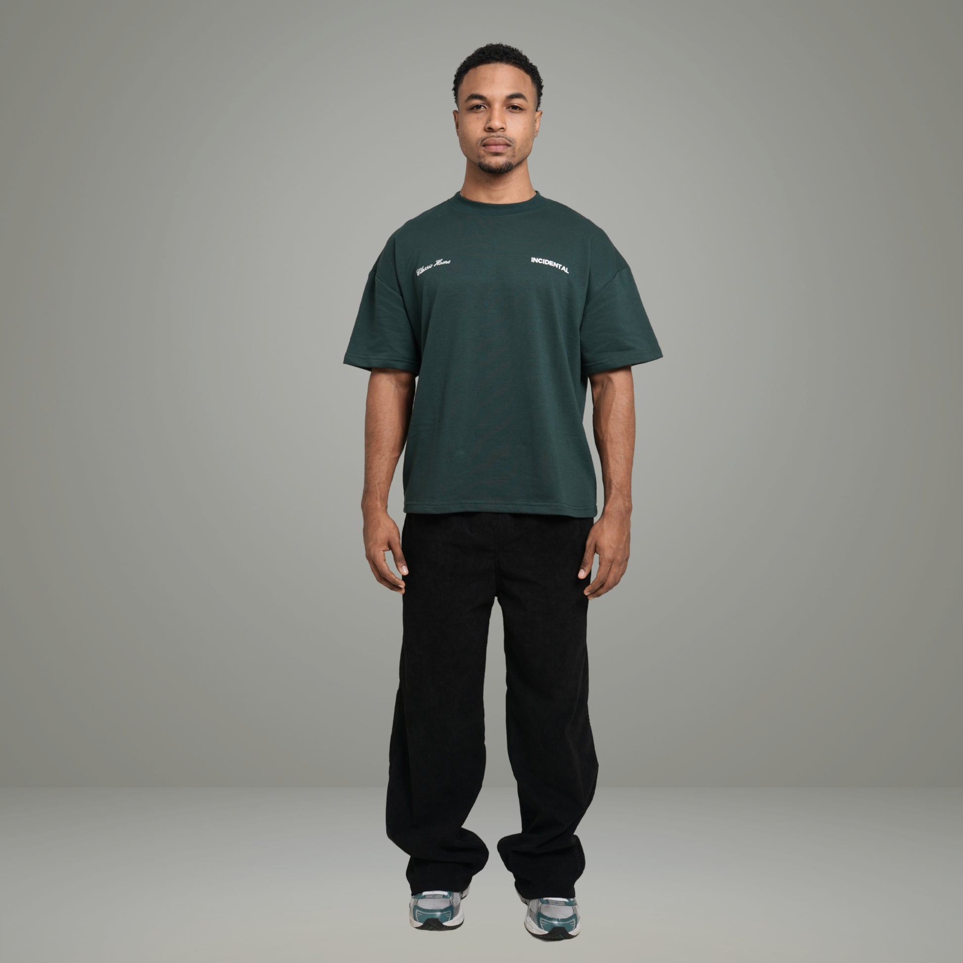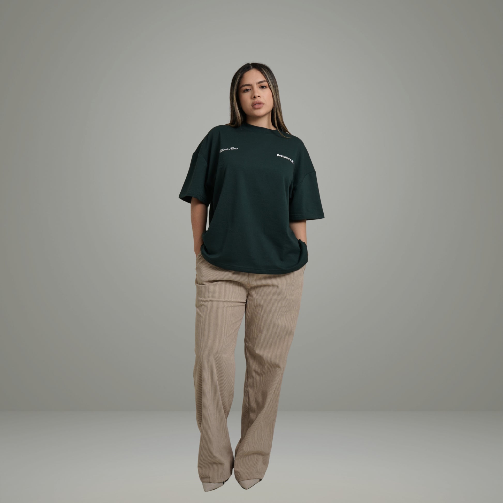 La Classic Home es una camiseta de corte amplio y estructura premium diseñada para quienes viven el streetwear desde lo auténtico. Su tono Green Deep aporta elegancia, sobriedad y carácter.