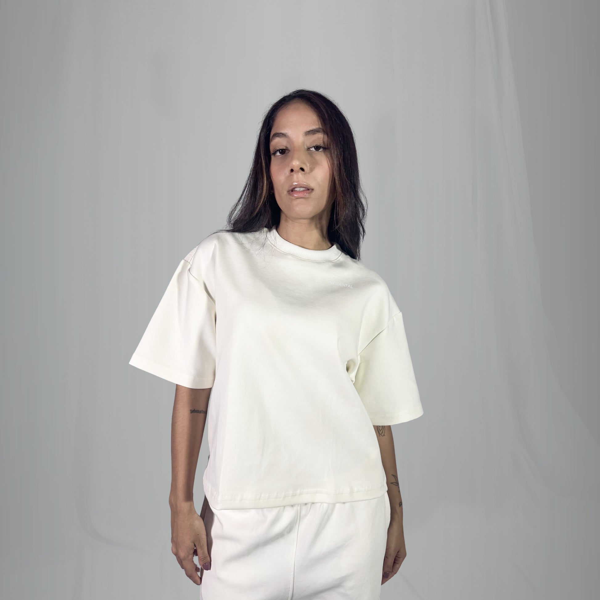 NUESTRA CAMISETA ESTÁ CONFECCIONADA EN ALGODÓN ESMERILADO, UN MATERIAL DE ALTA CALIDAD QUE GARANTIZA TRANSPIRABILIDAD Y TIENE UN TACTO FRÍO. SU DISEÑO MULTIPROPÓSITO CUENTA CON UN FIT OVERSIZE QUE RESALTA LA ESPALDA Y EL TORSO, MANTENIENDO UNA ESTRUCTURA TRIANGULAR EN LAS MANGAS.